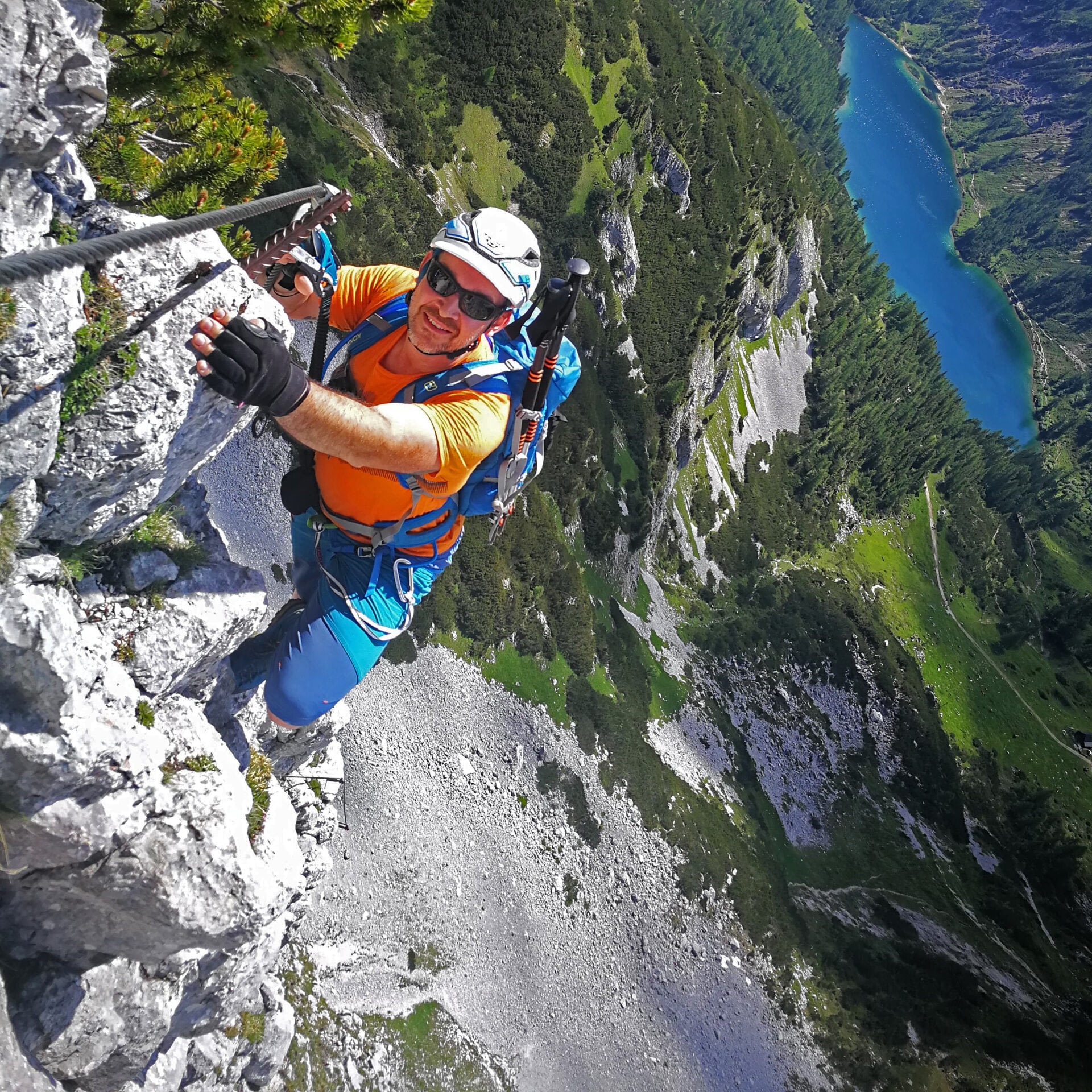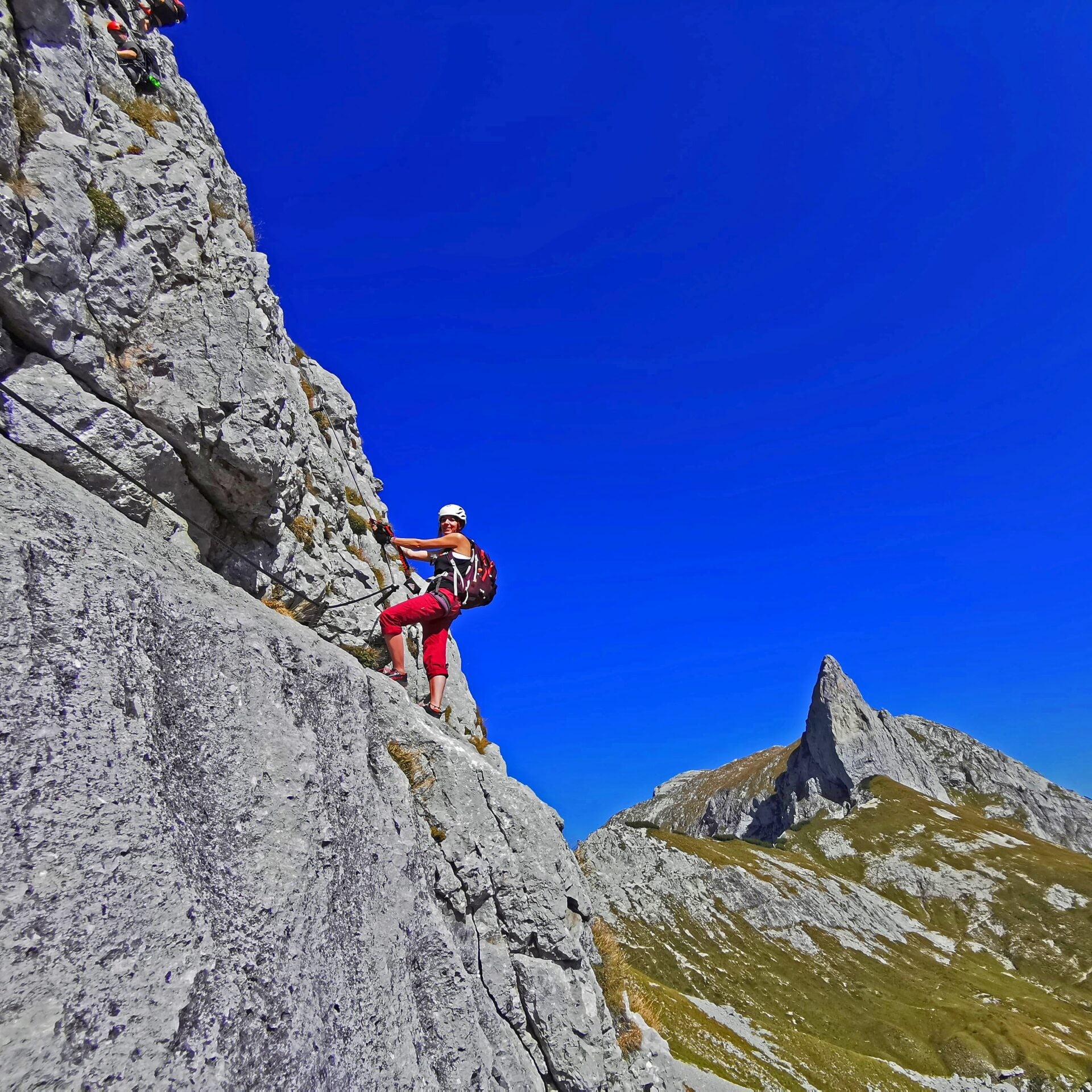 - kostenloses Leihmaterial (Klettergurt, Klettersteigset, Helm)