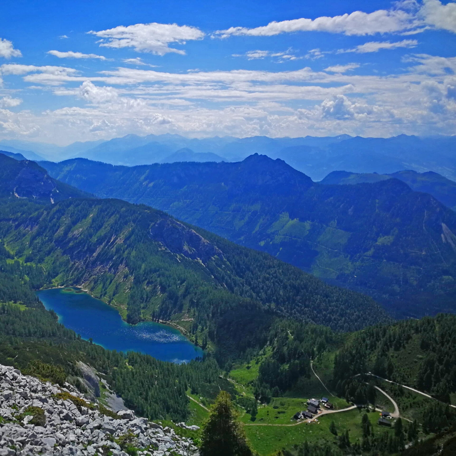 Der Höhepunkt der Tour ist der spektakuläre Ausblick auf das steinerne Massiv und das weite Almgebiet. Ein unvergesslicher Tag im Toten Gebirge, der Abenteuerlust und Naturverbundenheit vereint!