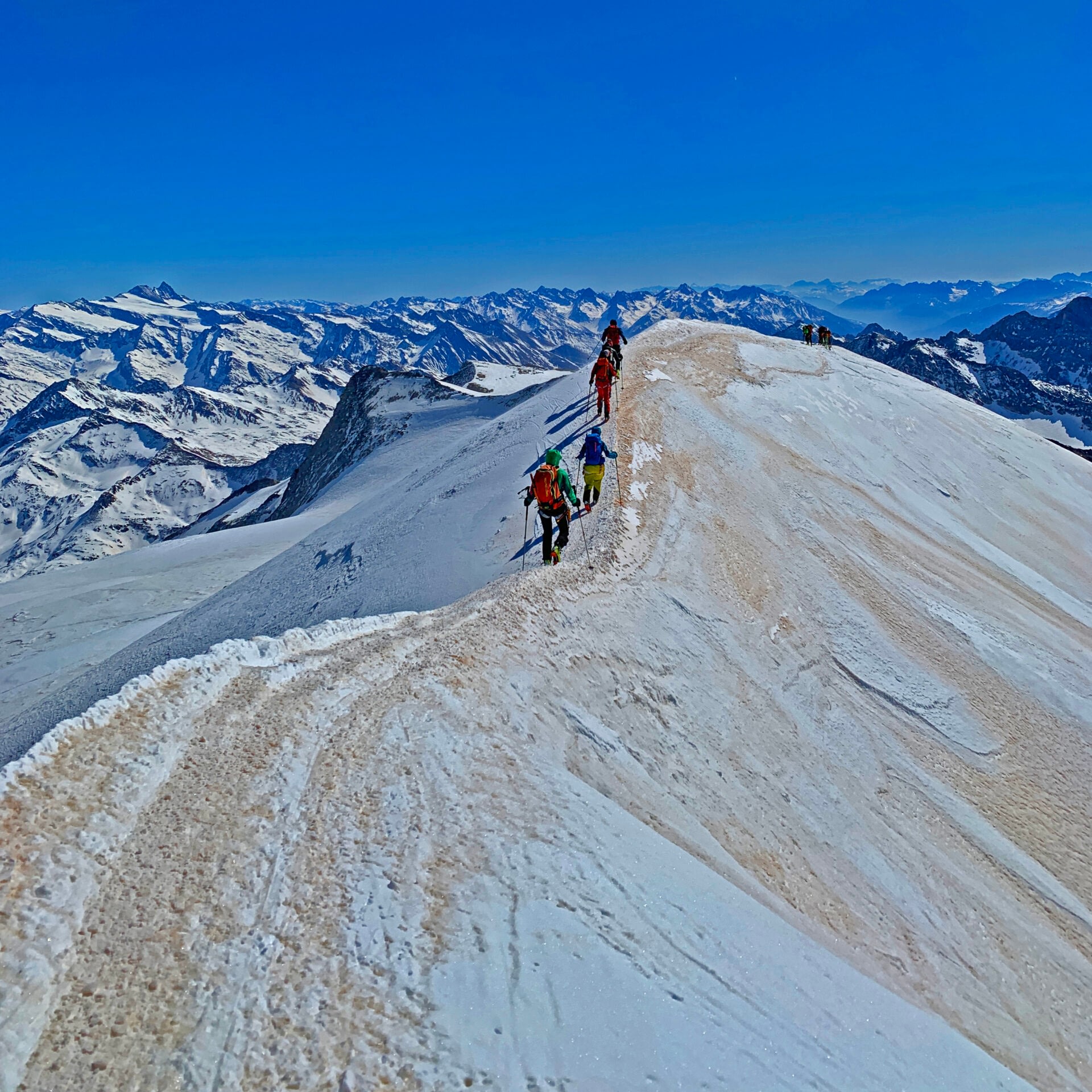 Nach einem frühen Start erreichen wir nach einer Stunde das Obersulzbachkees, auf dem Gletscher geht es über die Vendigerscharte zum Gipfel des Großvenedigers (3.666m)!