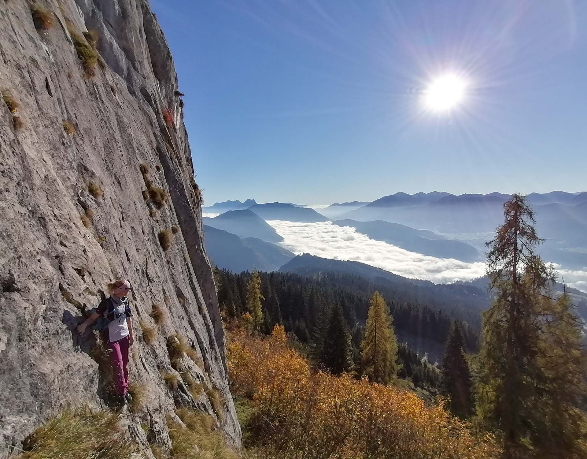 - kostenloses Leihmaterial (Klettergurt, Klettersteigset, Helm)
